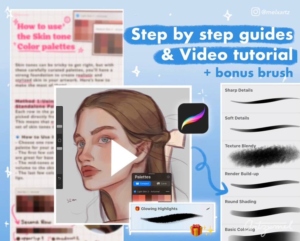 📚 3 Step-by-Step PDF Guides – Learn how to use these brushes & palettes effectively in Procreate.
